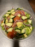 Mushrooms, olives, bell peppers, onions & tomatoes.